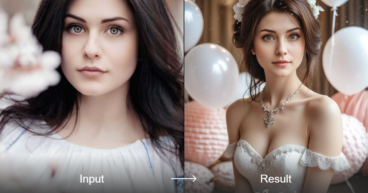 Effortlessly convert your photo from casual to elegant bridal style with a1.art. Achieve a stunning transformation in seconds.