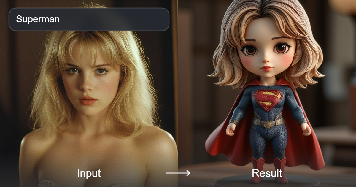Generate 3D superhero figures in a cute and toy mode with a1.art's multiple style converters. Get the top picks, hot trends, and viral hits with 3D, cute doll, master, and toy styles.