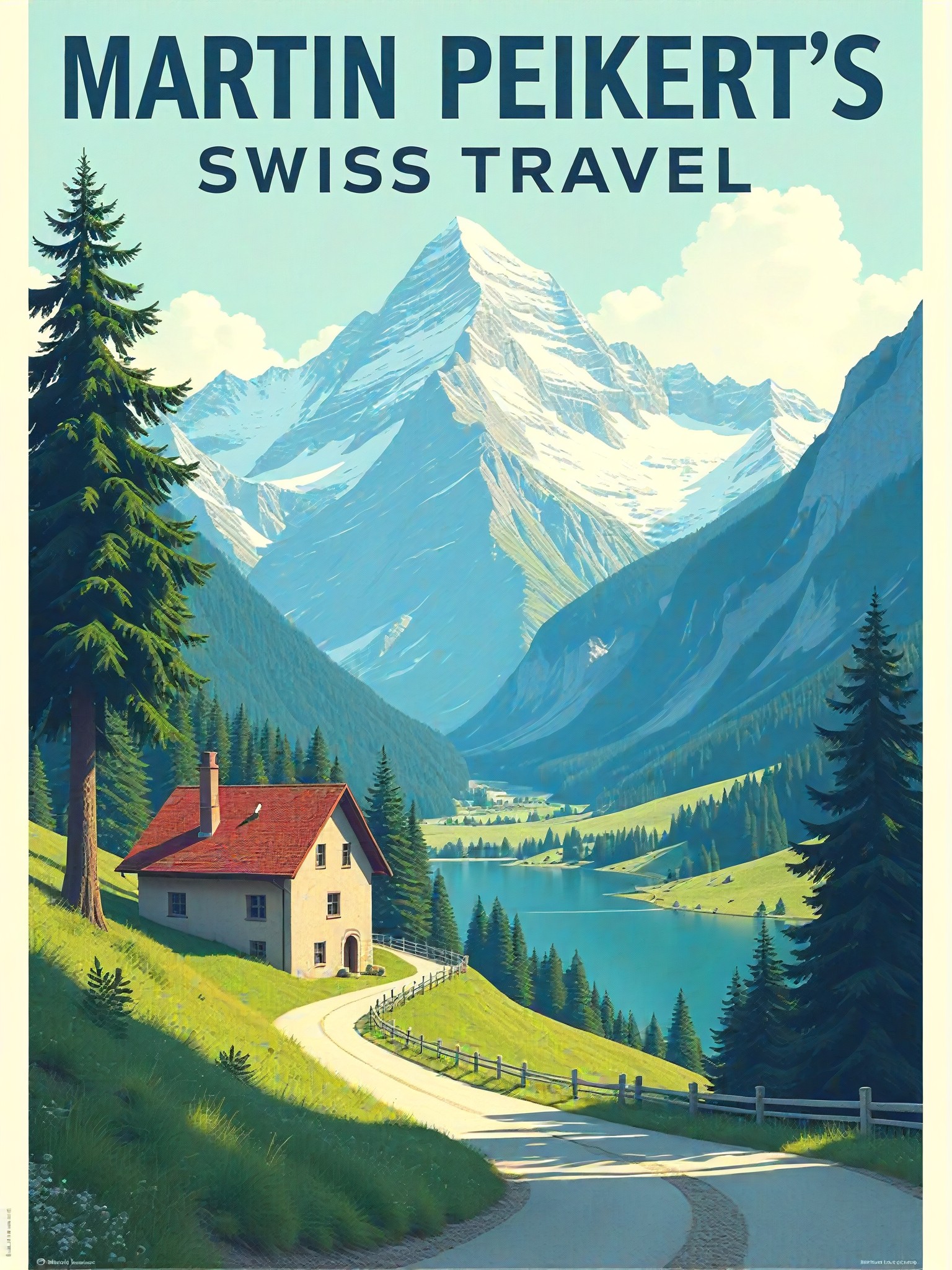 Martin Peikert's Swiss Travel Poster Generator is an AI image generator that allows users to create realistic and high-quality images in the style of Swiss travel posters. The generator is composed of multiple style components, including a realistic color palette, detailed textures, and a unique composition.