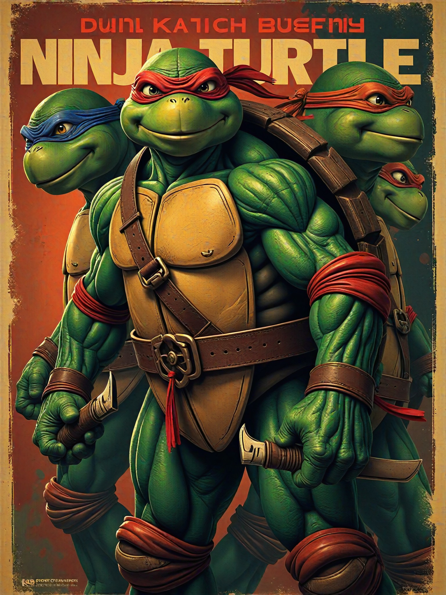 Generate high-quality, realistic posters of the Ninja Turtles with a1.art's Mutant Ninja Turtles Poster Generator. This style converter is perfect for creating professional and eye-catching promotional materials for your business or personal brand.