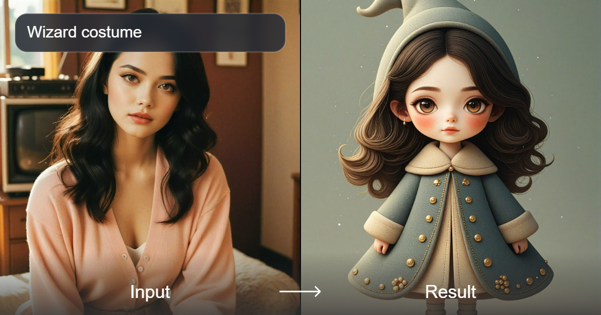 Convert your 2D images into 3D masterpieces with our AI image generator. Choose from multiple styles, including the adorable 3D dress-up doll style. Create unique and captivating images with a touch of creativity.