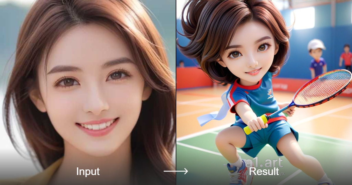 Transform your photos into anime badminton scenes instantly with a1.art. Enjoy a fun and vibrant photo style in seconds.
