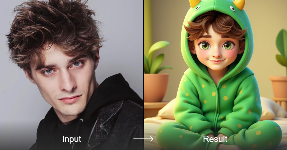 The Wearing Green Dinosaur Pajamas style converter adds a playful and fun element to any 3D image. The output is in the 3D Master style format, giving a realistic and professional look.