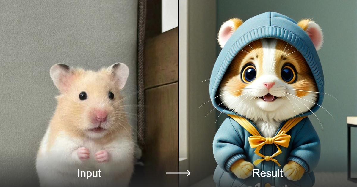 Create adorable 3D hamster images with the Dress the Hamster style converter. Perfect for pet lovers and creators alike!