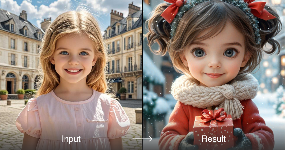 Quickly convert your photo to an adorable winter holiday style with a1.art. Unleash creative transformations effortlessly.