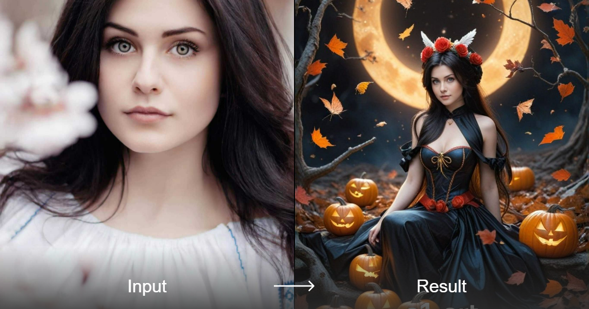 Mysterious Pumpkin Lantern and Black Dress Beauty on Halloween Night | a1.art