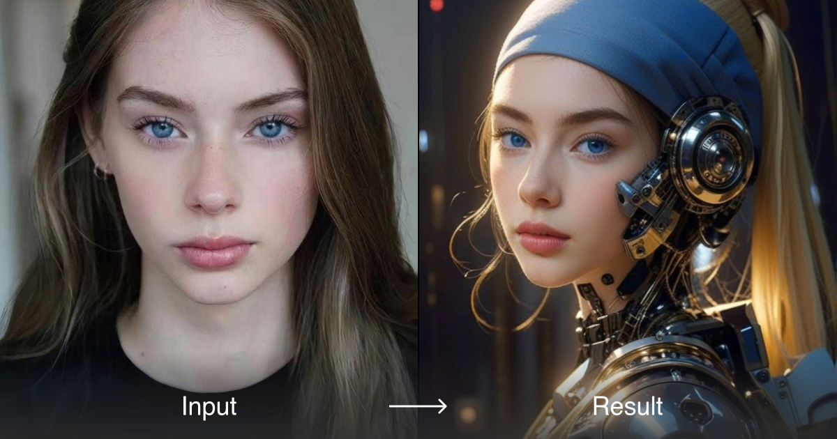 Experience a seamless transformation from modern attire to a high-tech cyborg look. Revolutionize your photos with advanced AI technology.