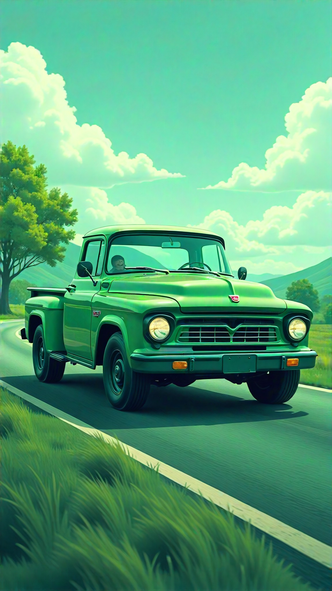 Generate realistic and master-style images of neon pickup trucks with a1.art's AI image generator.