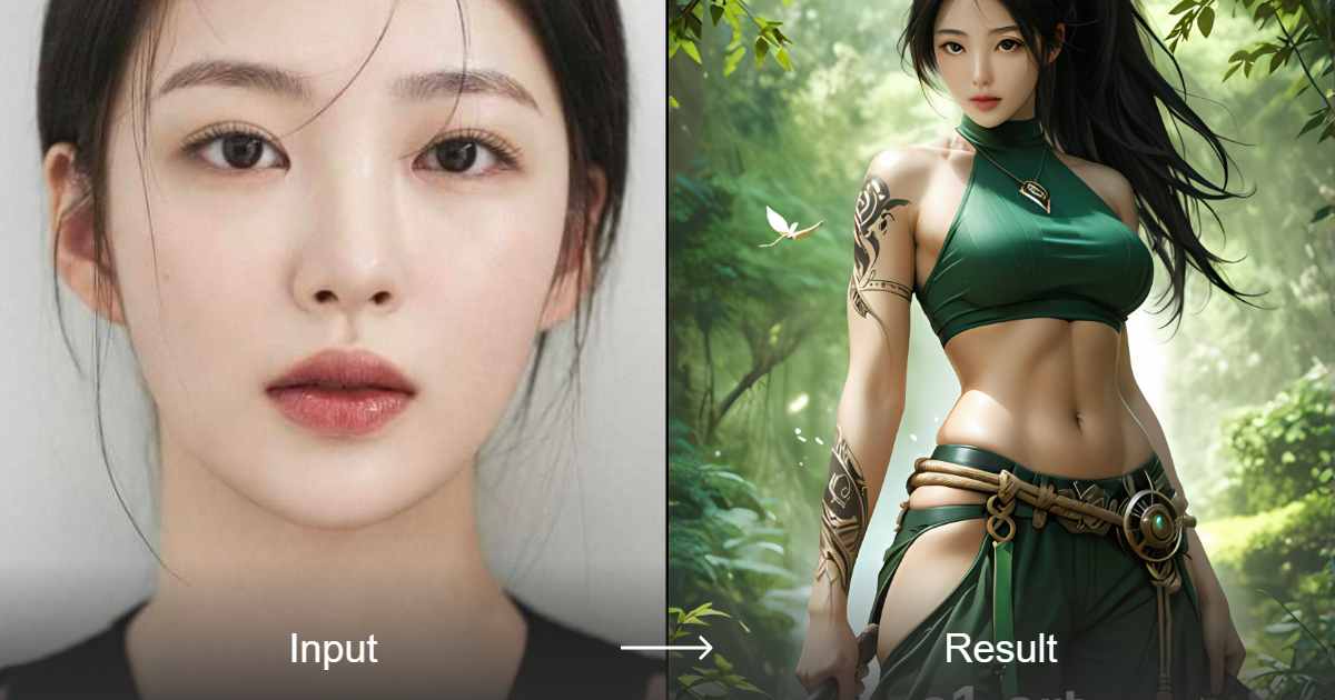 - Params:Your photo , Face swap , Integral , Pose , Describe , Style , Size