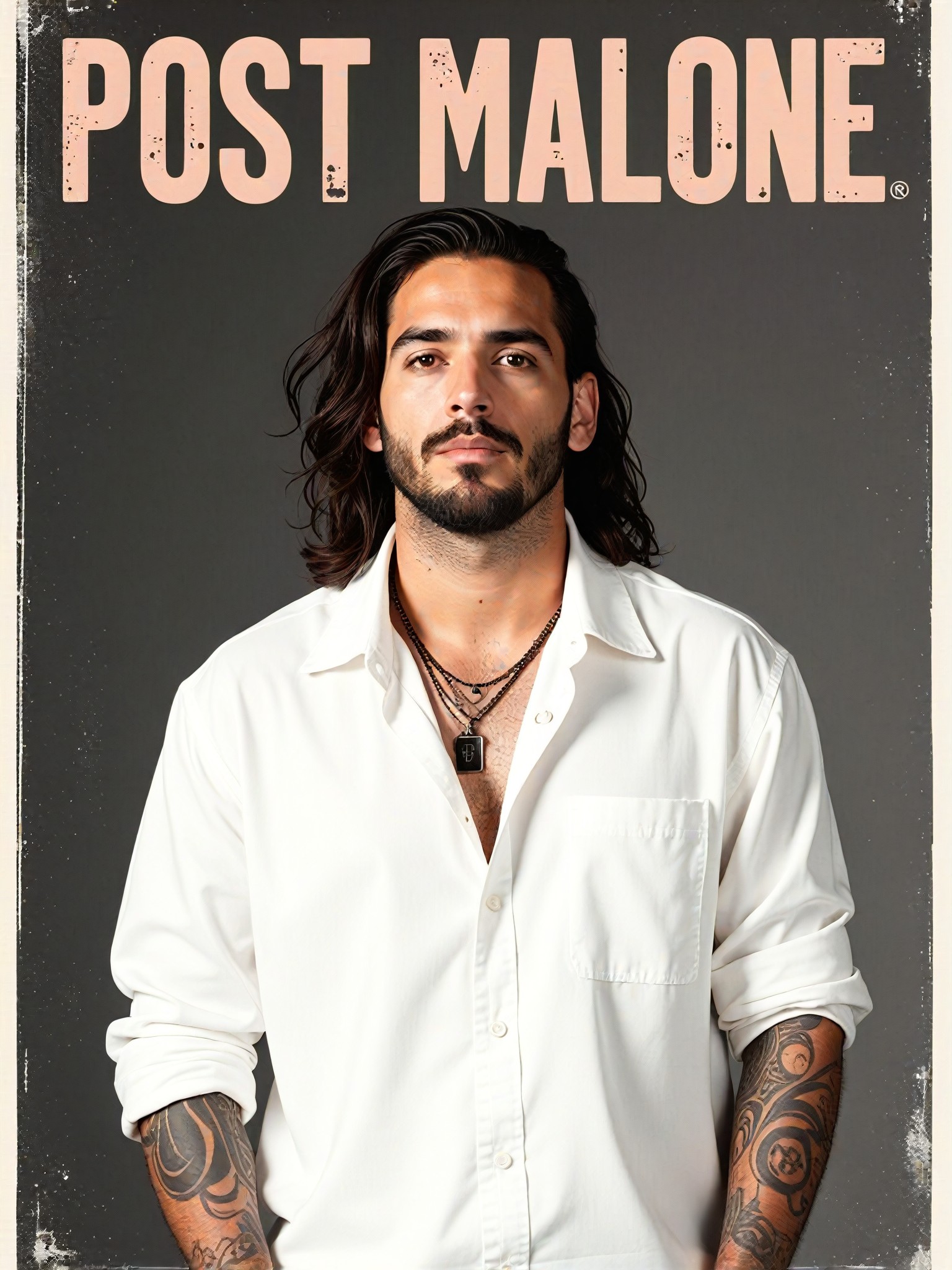 Generate realistic and master posters in the style of Post Malone with a1.art's advanced AI image generator.