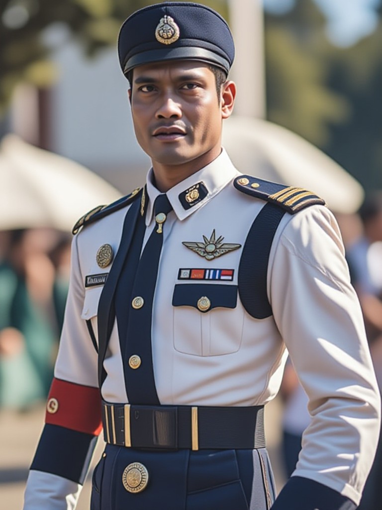 Create powerful and detailed Indian army concept illustrations with our remix style converter, featuring realistic portraits in bright blue and white uniforms.