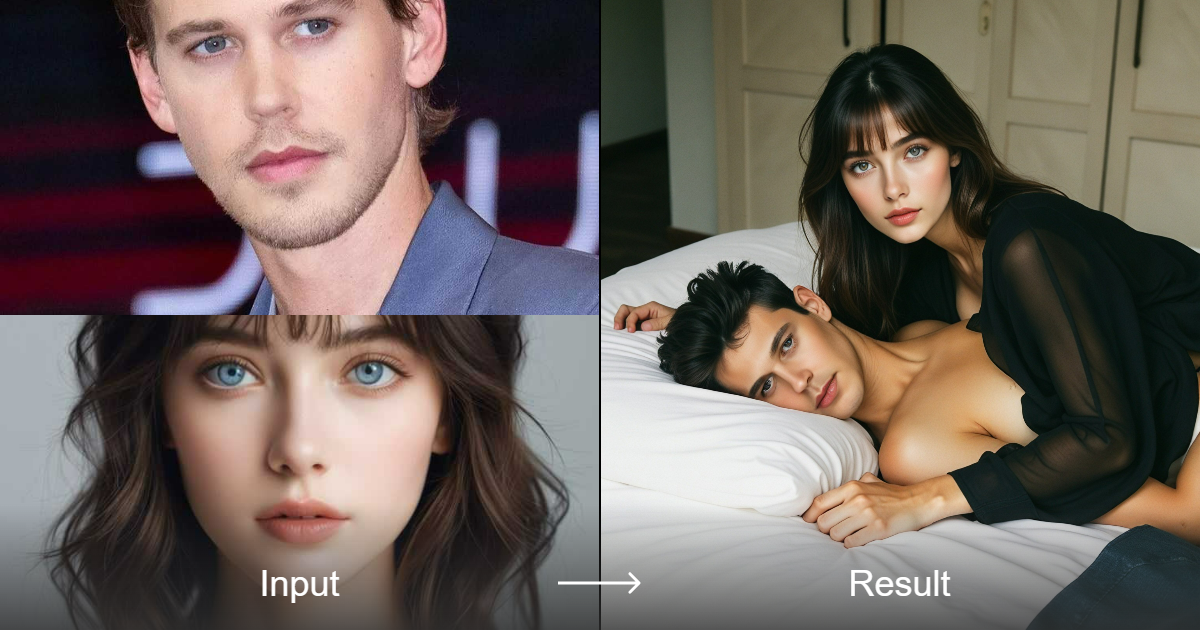 Create stunning group photos with the a1.art Bedroom Couple P2 converter, featuring a photorealistic style and a retro aesthetic perfect for Instagram.