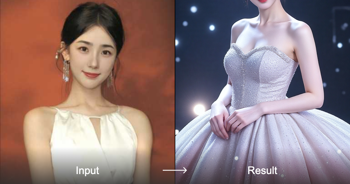 Transform your base model into a stunning art station girl photo with our realistic gradient gown style converter.