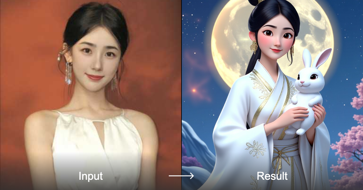 Elevate your artistic vision with the Chang'e style converter, bringing your digital artwork to life with 3D Pixar-style characters and vivid art station aesthetics.