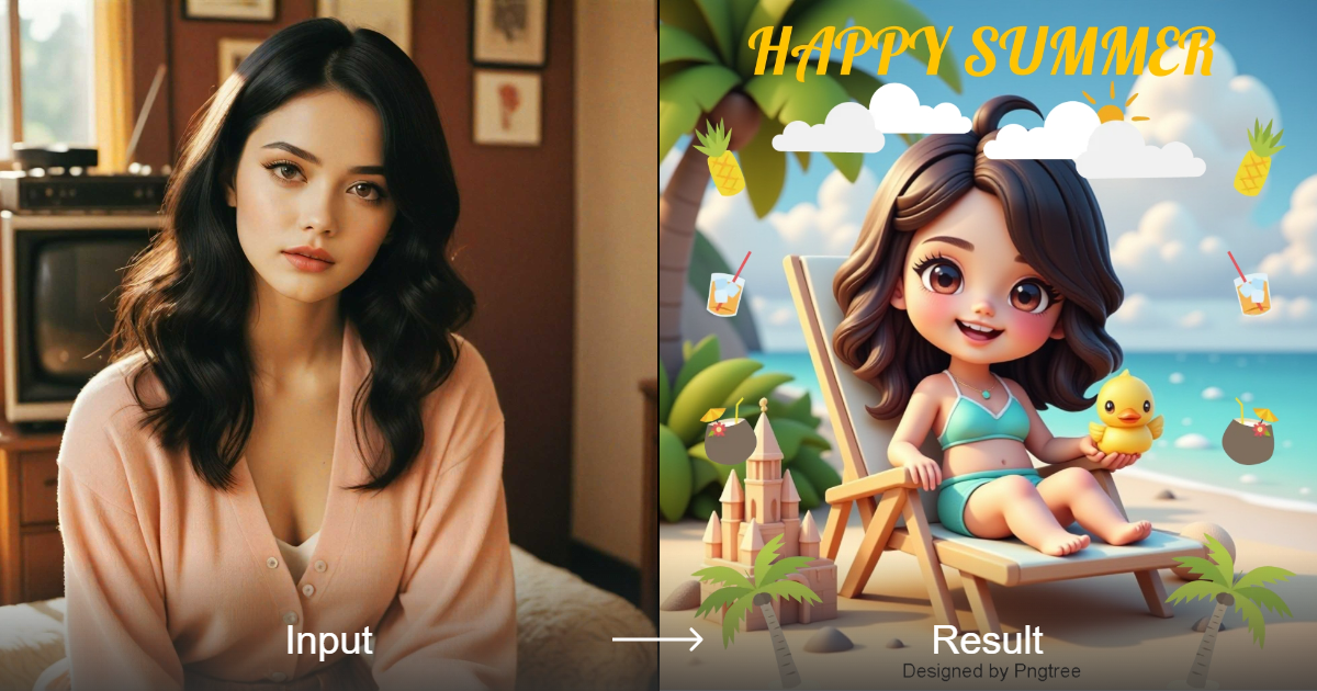 Create stunning 3D cartoon-style seaside vacation dolls with our AI art generator, perfect for collectibles or game assets.