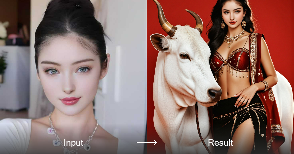 A1.ART Sacred Bull P1: Realistic Indian Woman with Sacred Cow | a1.art