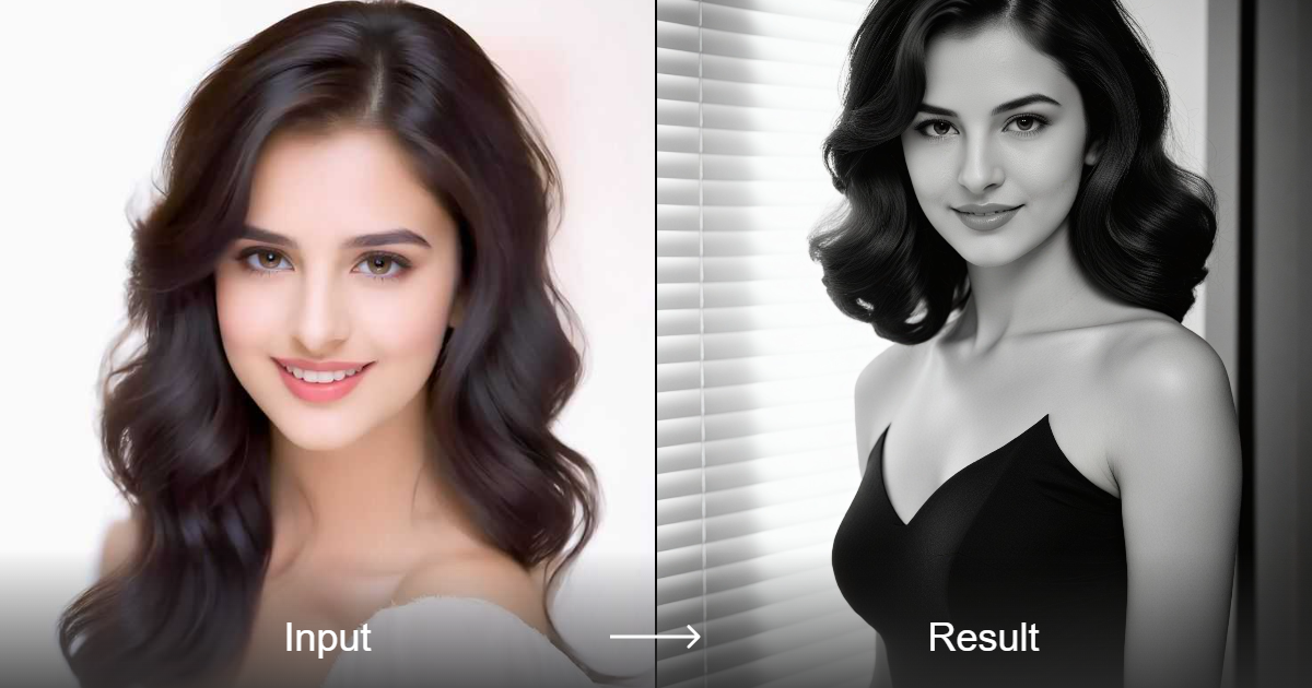 Transform your images into striking 50s noir movie stills with our AI-driven style converter, featuring realistic, photorealistic portraits that exude mystery and allure.