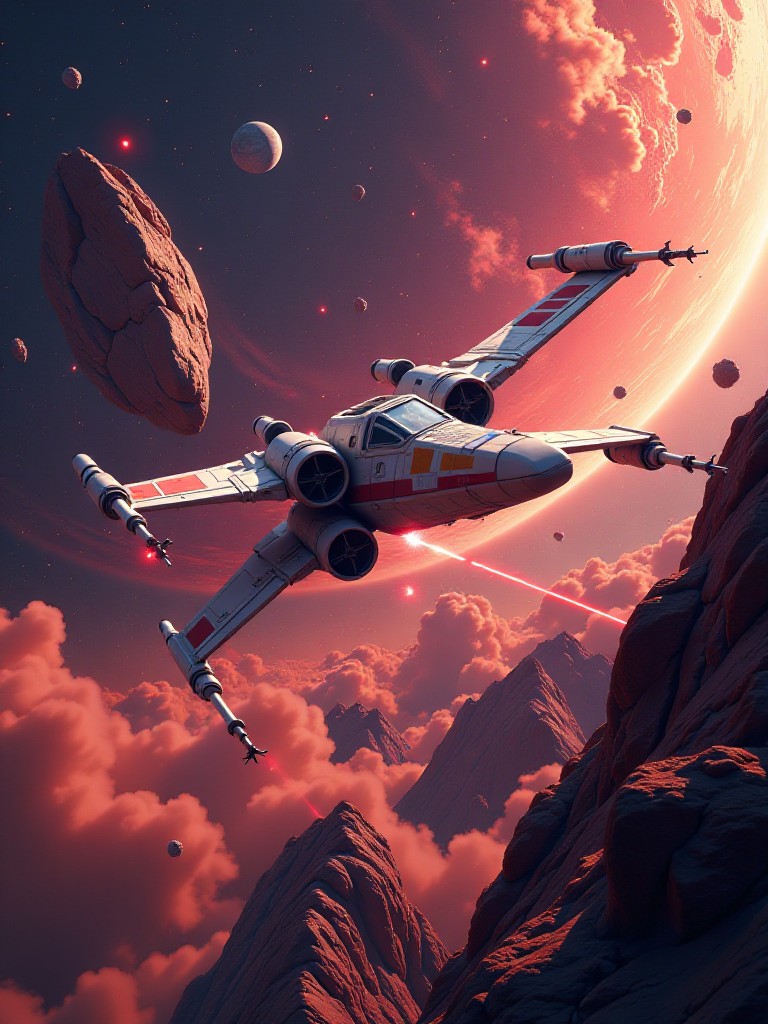 Generate realistic Star Wars space battle scenes with customizable styles, perfect for fans of the galaxy far, far away.