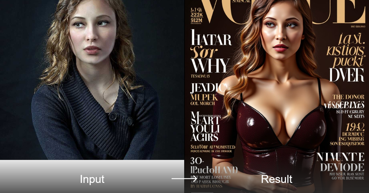 Create stunning, ultra-realistic magazine covers with our versatile AI-generated images featuring a young woman in a seductive pose.