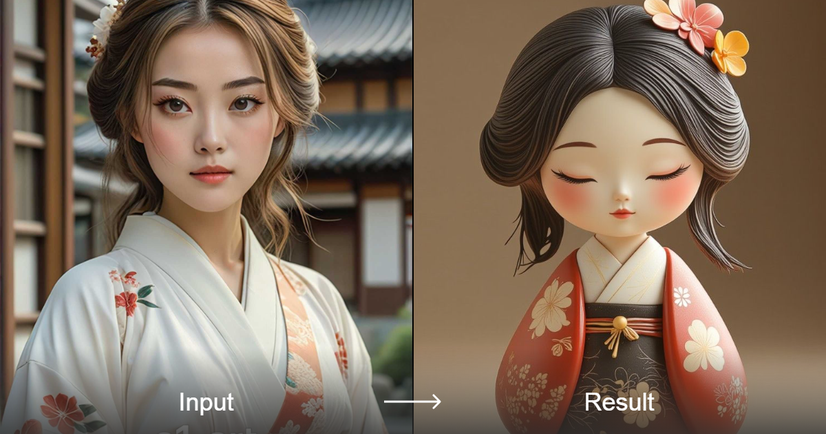 مُولِّد صور ذكاء اصطناعي بأسلوب الكيمونو الياباني يحوّل أي صورة إلى نمط دمية الكيمونو الياباني. مثالي لإنشاء رسومات فريدة وجذابة.