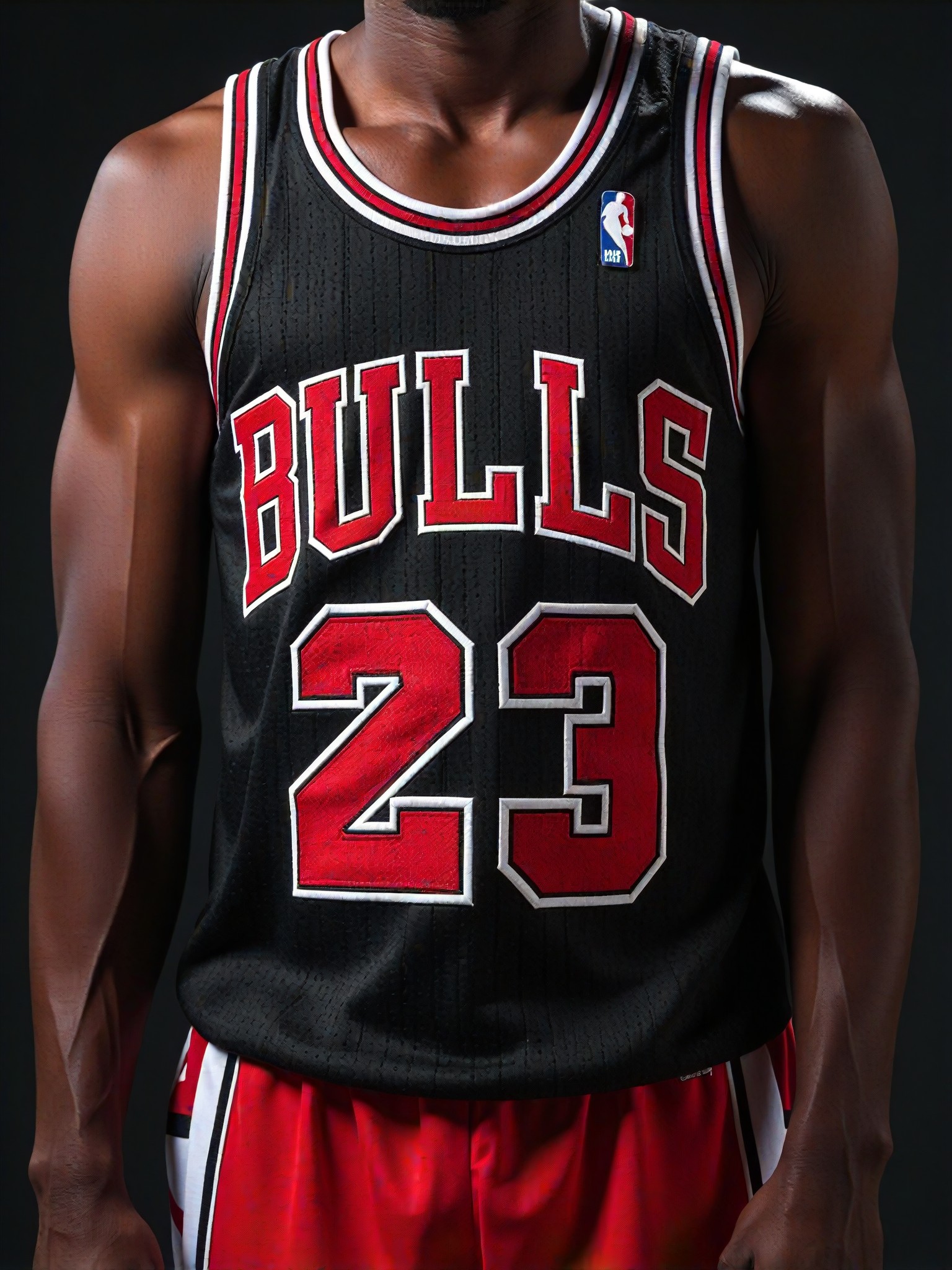 واقعي ومحول أسلوب ماهر لإنشاء صور لقميص شيكاغو بولز الأسود مع شعار جوردان.