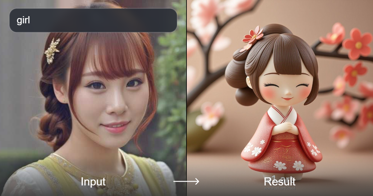 قم بتحويل صورتك بسهولة إلى شخصية كرتونية لطيفة باستخدام a1.art. استمتع بتحول ممتع في بضع نقرات فقط.