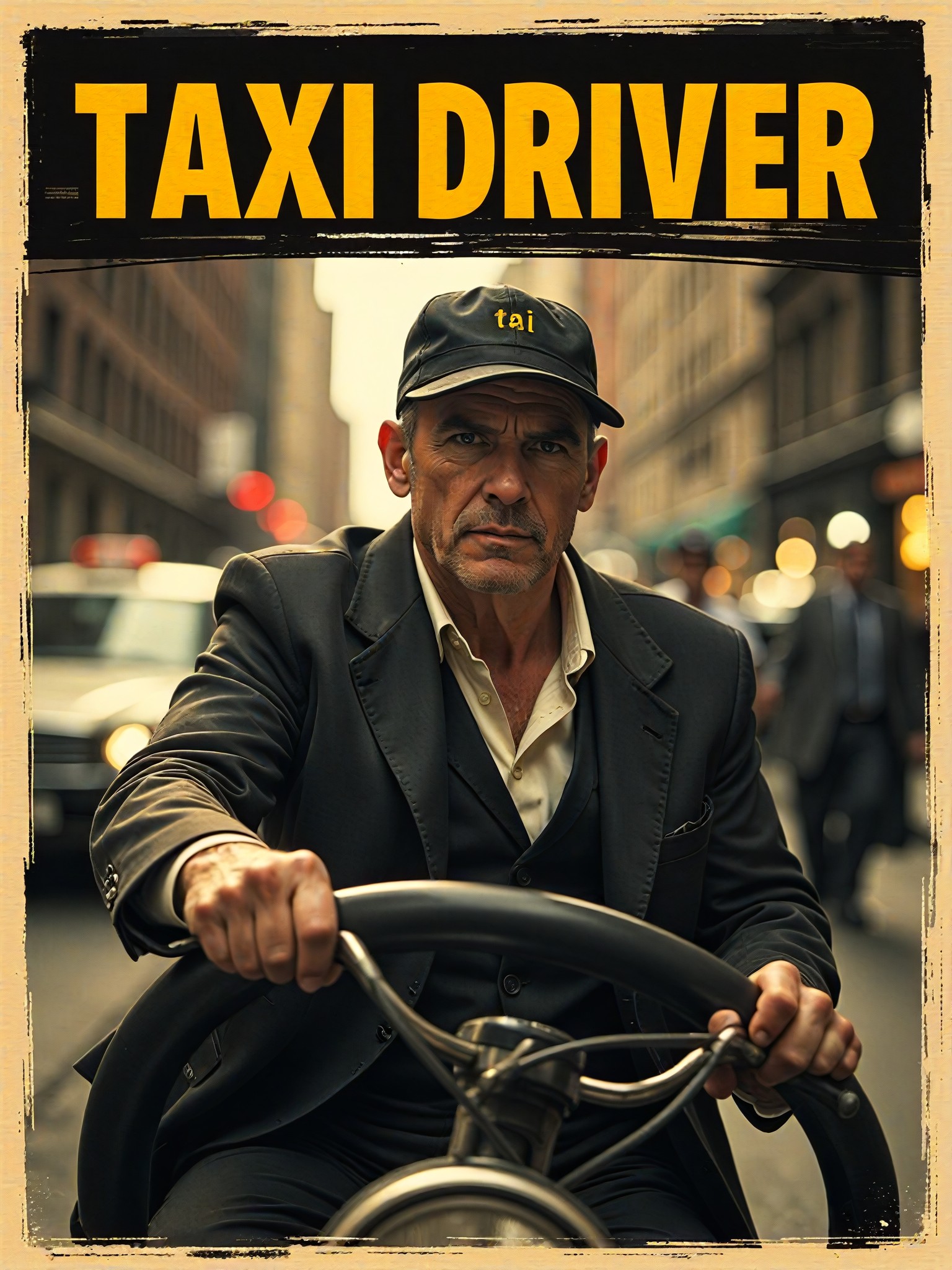إنشاء صور عالية الجودة وواقعية بأسلوب ملصق سائق تاكسي.