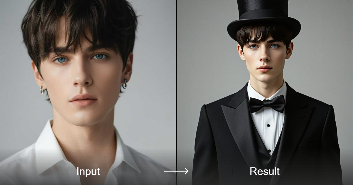قم بتحويل صورتك بسهولة من مظهر غير رسمي إلى إطلالة رسمية أنيقة باستخدام محوّل النمط من a1.art. شهِّد تحولًا سلسًا.
