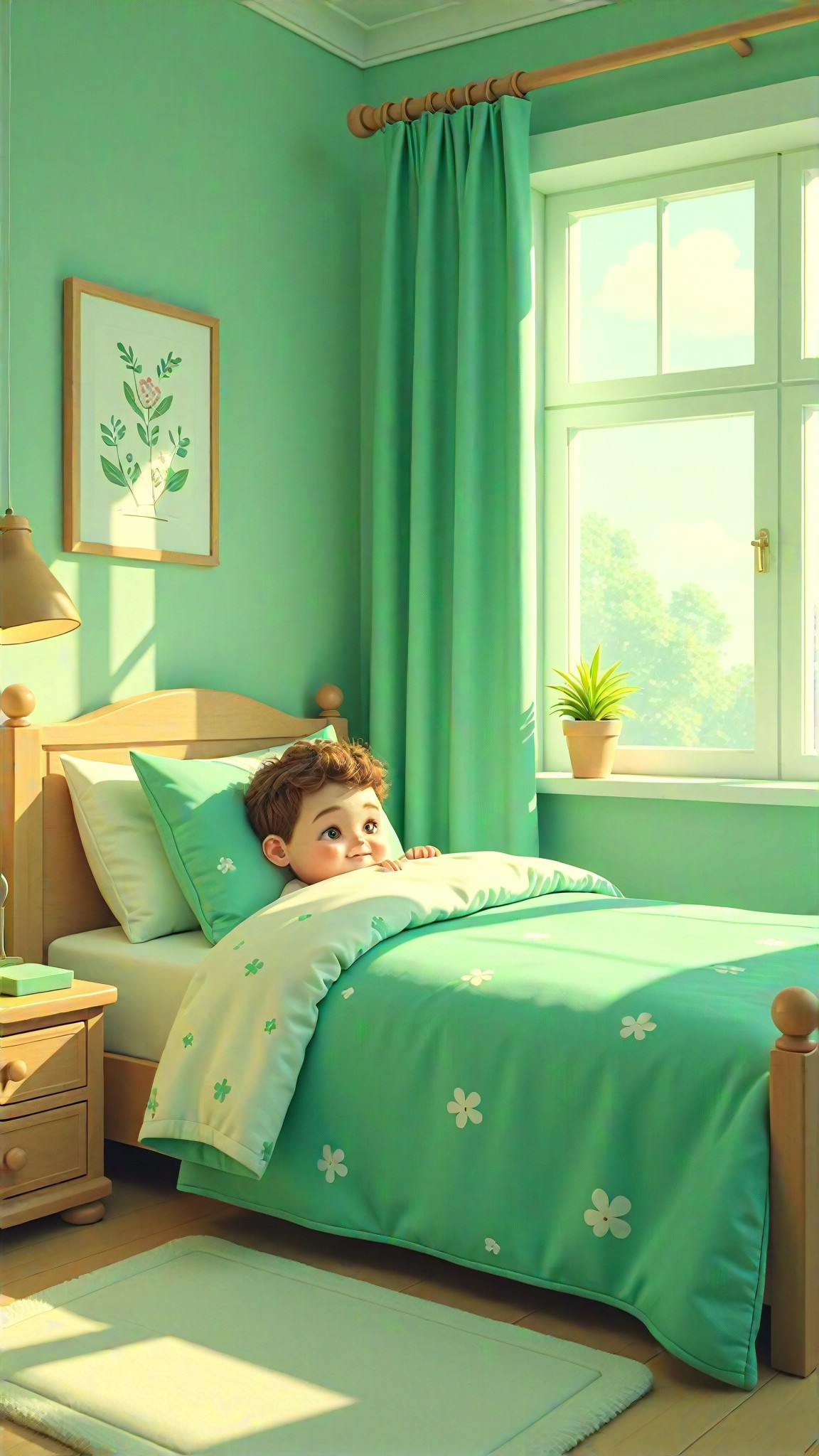 مُولِّد صور بأسلوب الواقعية لإنشاء خلفيات دافئة ومريحة للأسرّة.