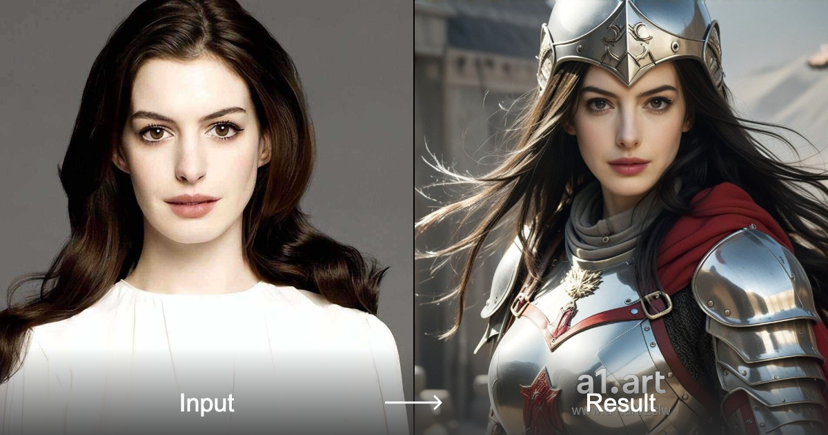 قم بتحويل صورتك الحديثة إلى زي دروع وسطي مذهل بكل سهولة باستخدام a1.art. شهِّد تحولًا رقميًا سريعًا.