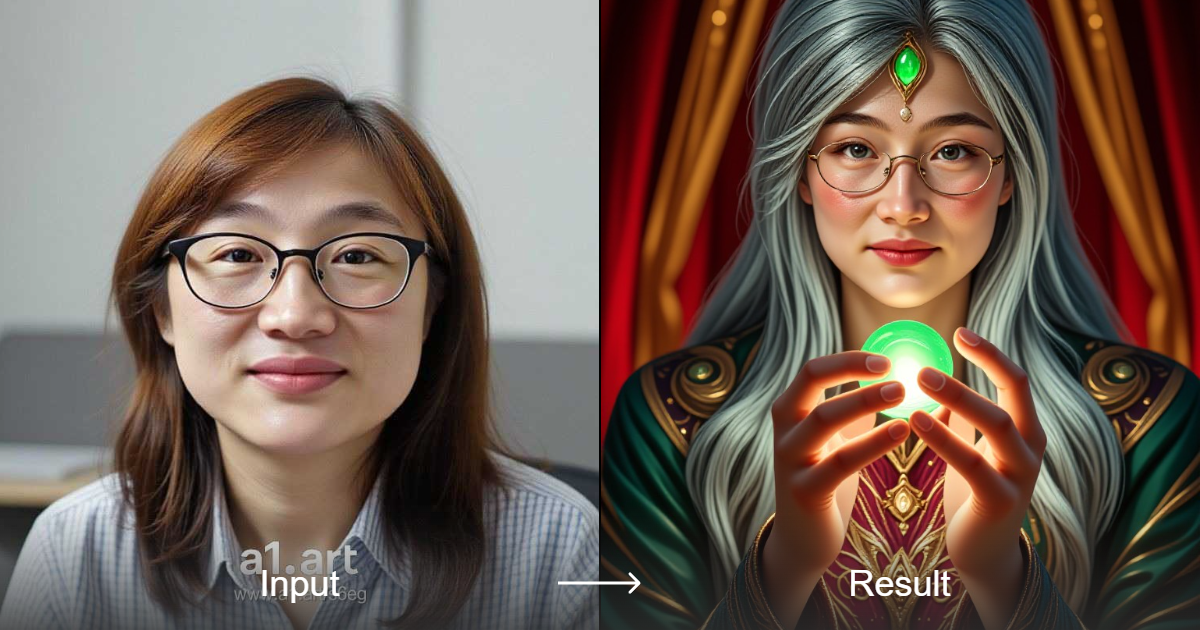 Transform your art into CG, sexy, illustration, character, and more with a1.art's unique style converter, "算命師與水晶球."