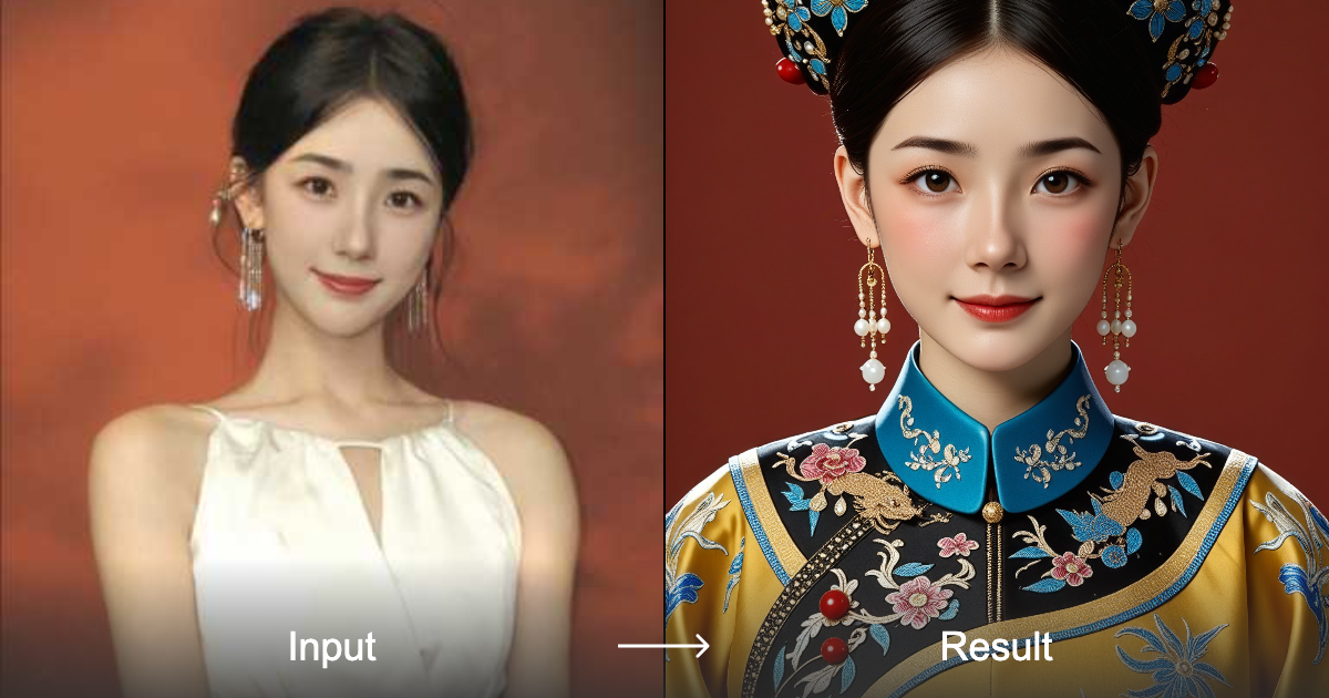 حوّل صورك إلى أعمال فنية مذهلة مستوحاة من أسلوب سلالة تشينغ باستخدام أداة تحويل إمبراطورة سلالة تشينغ.