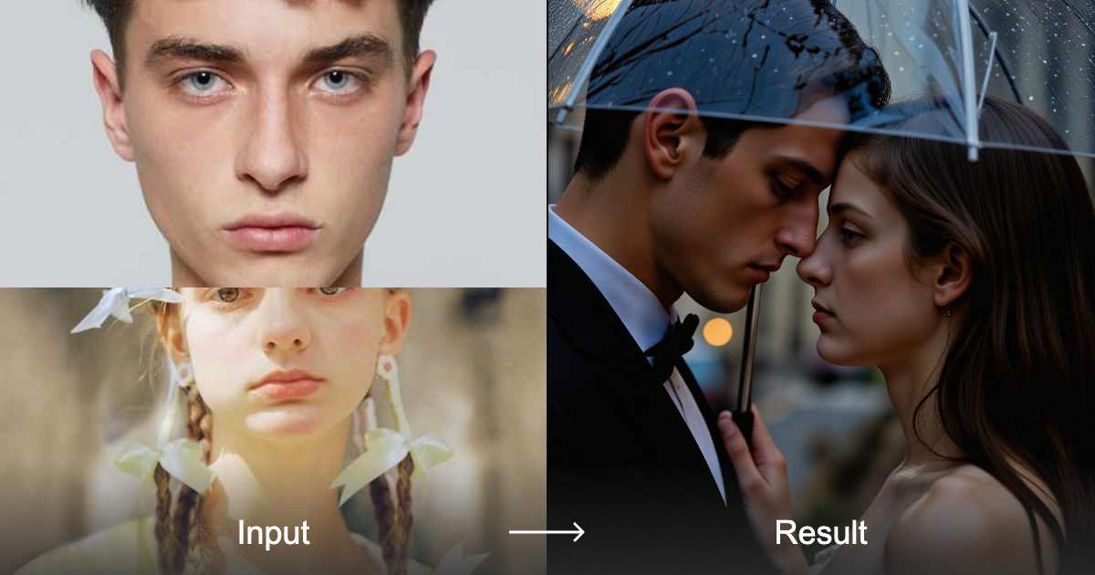 Transform your photos into romantic, cinematic close-ups with the Under the Umbrella style converter, capturing couples under umbrellas in gentle rain.