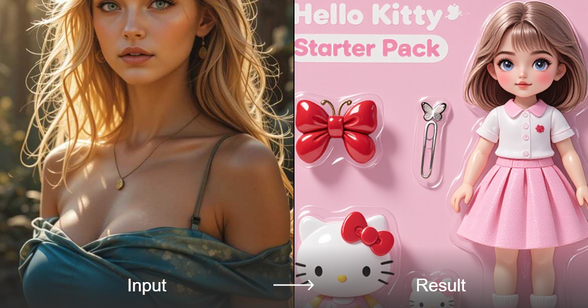 حوّل أعمالك الفنية الرقمية إلى حزمة Hello Kitty الافتتاحية الواقعية للغاية والمليئة بالألوان باستخدام محول النمط من A1.Art. انغمس في شخصيات الألعاب والرسوم المتحركة وأنمي وجماليات الطراز Y2K وأنماط النيون.