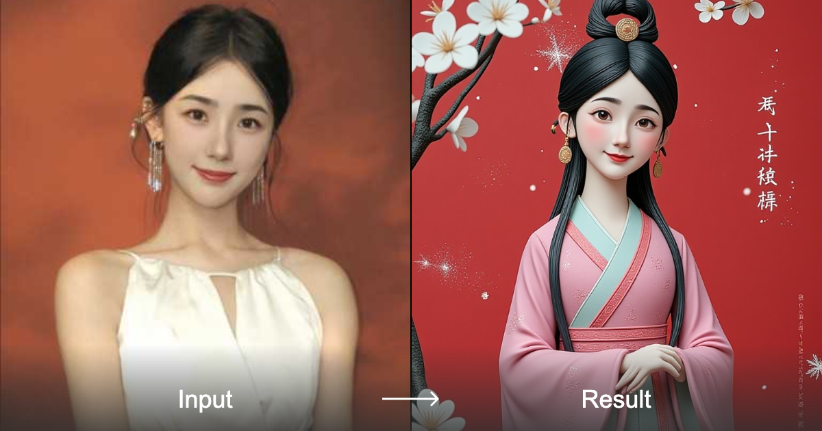 Transform your creativity into stunning 3D Hanfu-inspired clay art with our intuitive style converter. Create cute, handmade, cartoon-style figurines or animations that bring traditional Chinese elegance to life.