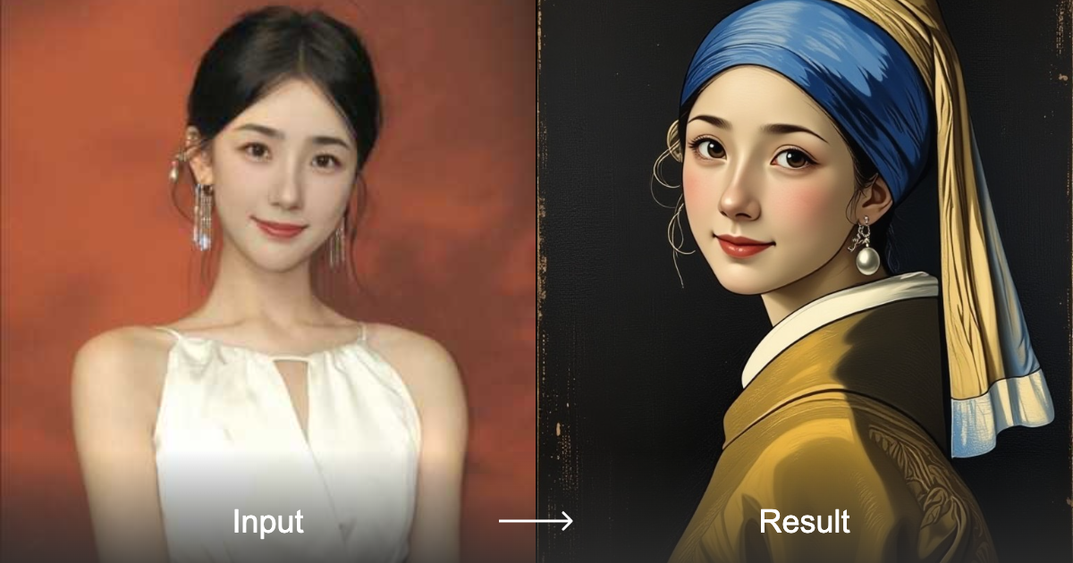 A1. محول نمط الفن - الفتاة مرتدية قرط اللؤلؤ | a1.art