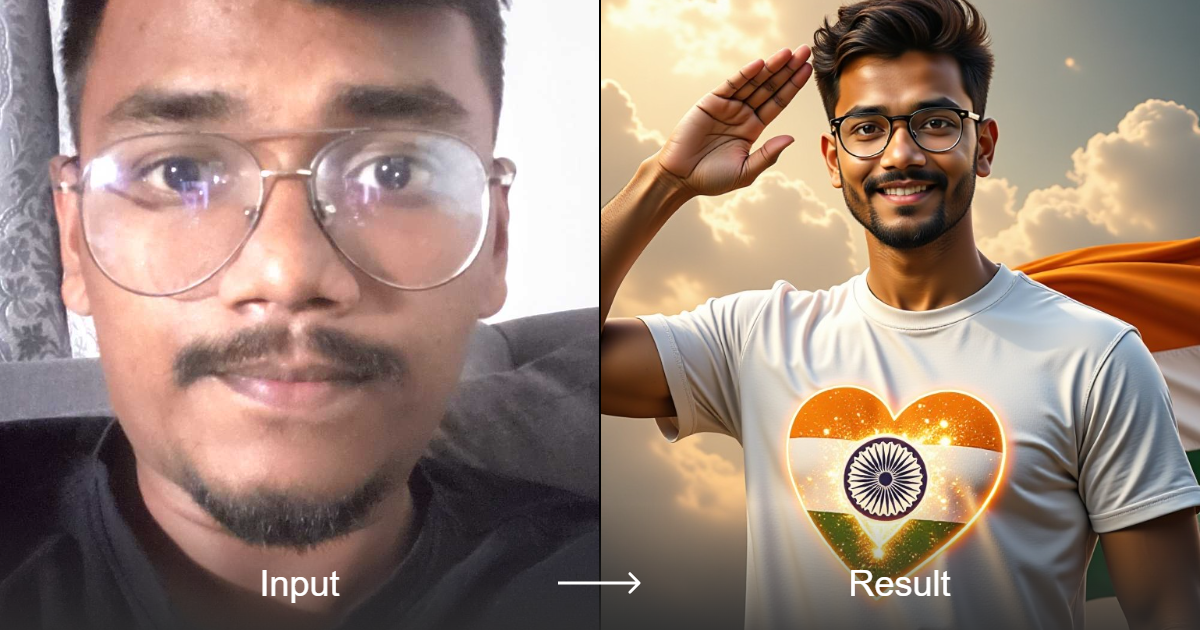 Transform your photos into breathtaking, realistic, and highly detailed digital artworks featuring the iconic "Jai Hind" theme, perfect for patriotic celebrations or personal expression.