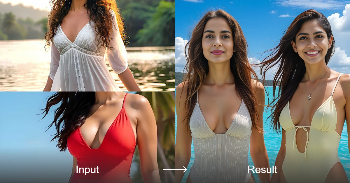 حوّل أفكارك إلى صور جماعية مذهلة وواقعية للغاية تضم عارضات شاطئ جميلات بأساليب فنية سينمائية وواقعية.