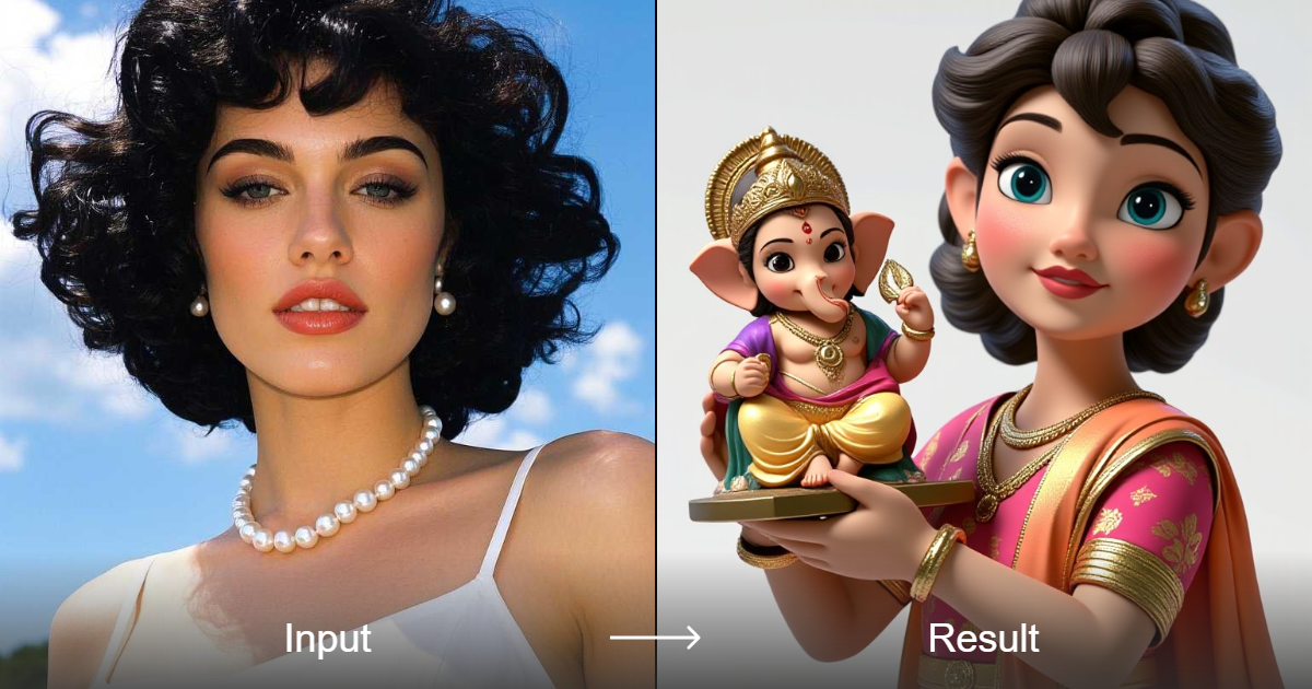 حوّل فنك إلى تمثال ثلاثي الأبعاد لإله برأس فيل على طراز بيكسار باستخدام محول النمط الفريد لدينا.