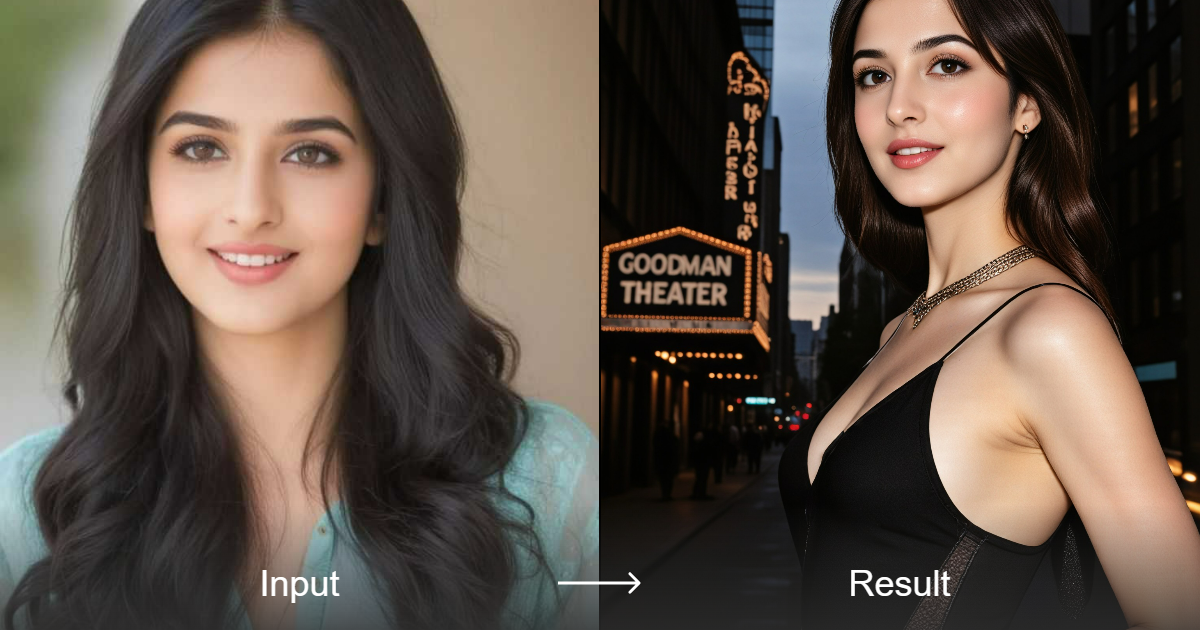 حوّل خيالك إلى فن كرتوني ثلاثي الأبعاد مذهل يظهر امرأة جميلة تقف أمام مسرح غودمان الأيقوني في نيويورك.