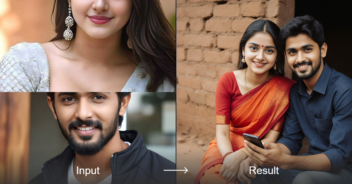 Transform your photos into a charming Indian rural scene with this couple filter. Generate realistic, expressive group photos featuring traditional attire and natural settings.
