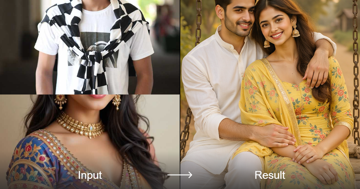 Transform your photos into stunning, romantic Indian-style couple portraits with the Couple on a Swing filter. Experience realistic, expressive photography effects effortlessly.