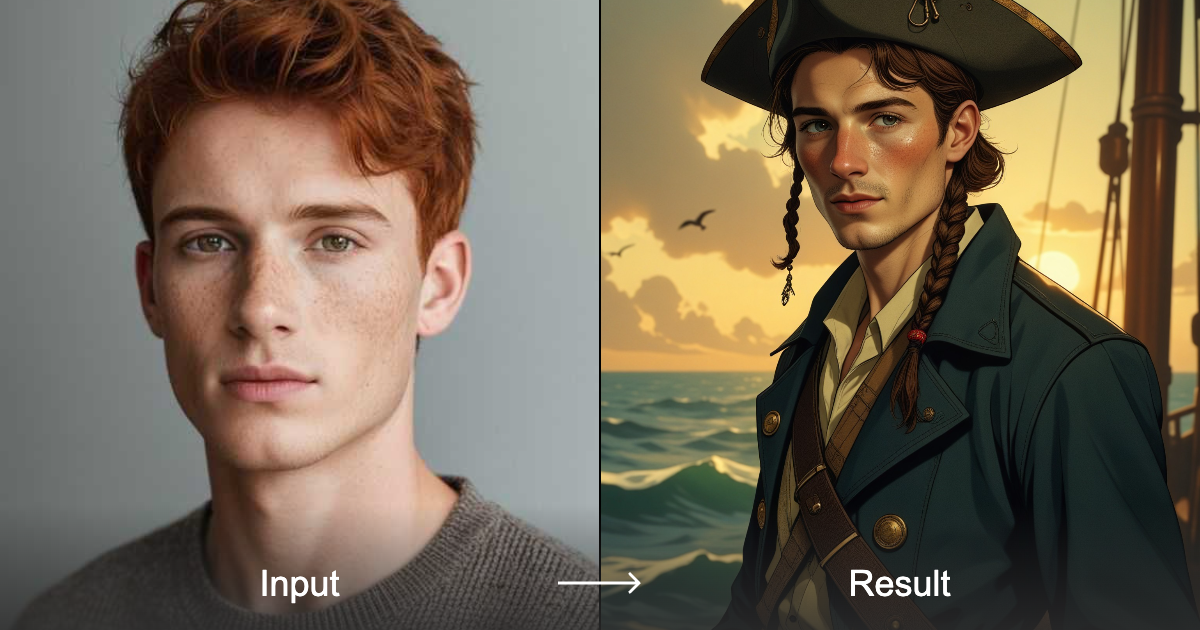 Transform your images into captivating anime illustrations of Captain Jack Sparrow from Pirates of the Caribbean, featuring dynamic CG art and digital painting styles.