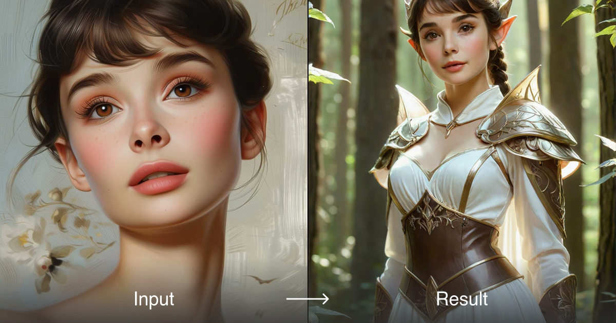 غيّر أسلوب صورتك بسهولة إلى زي إلفي رائع باستخدام a1.art. شهّد تحولًا خياليًا في لحظة.
