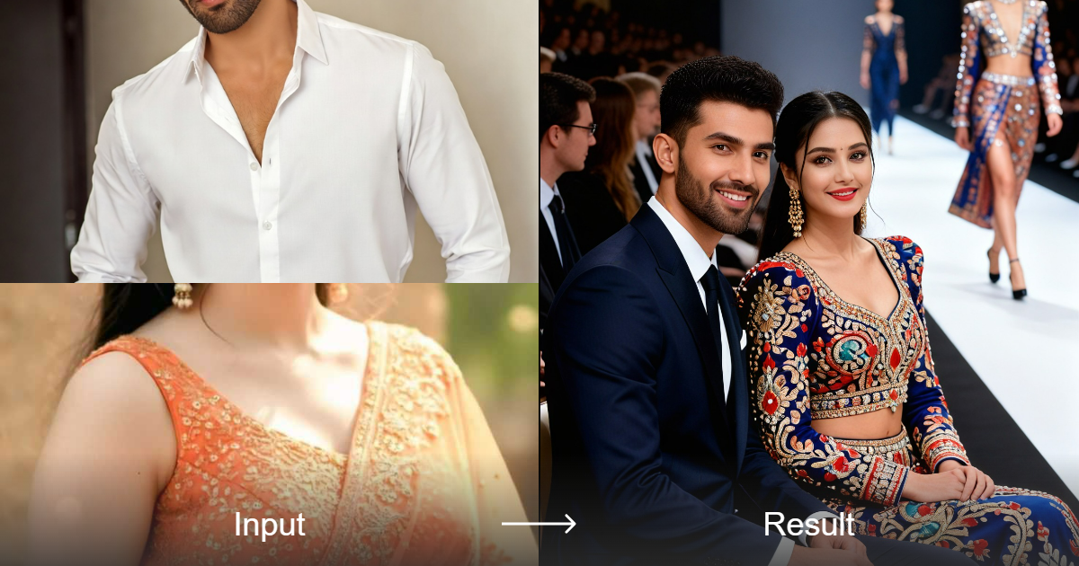 Transform your photos into stunning fashion show images with the Fashion Show - p2 filter. Generate realistic, high-fashion visuals featuring elegant couples in formal settings.