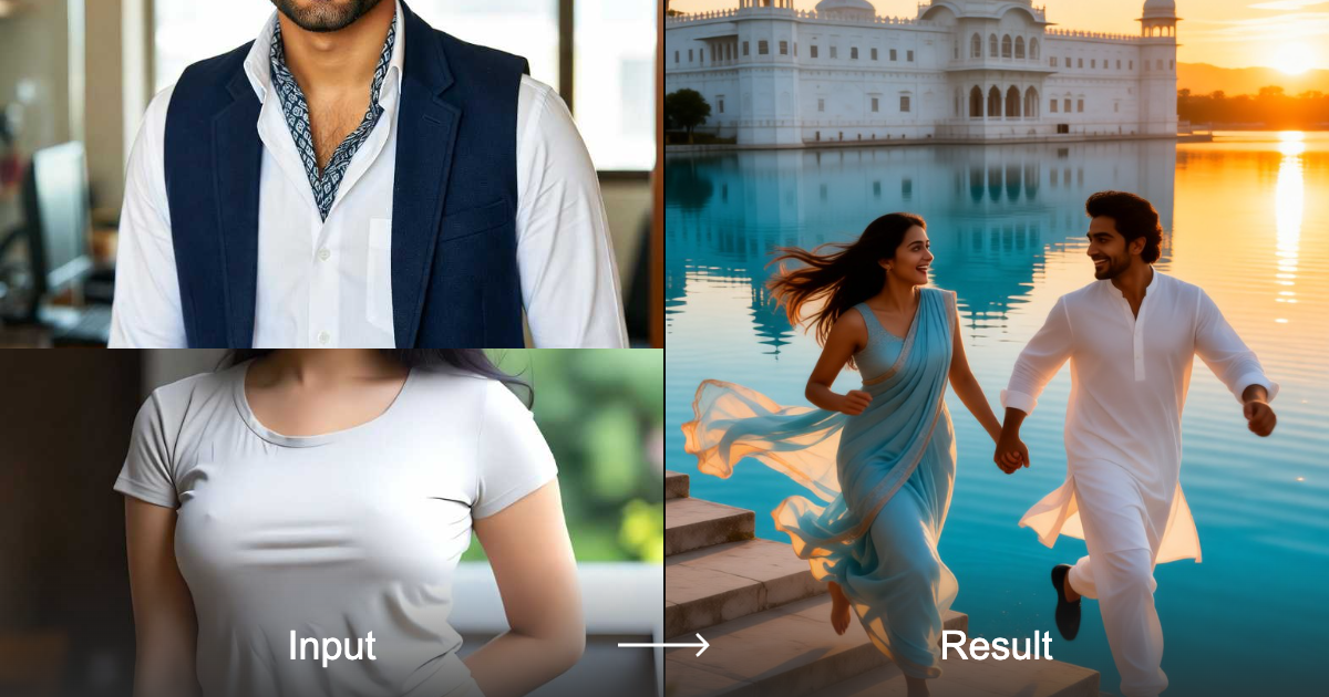 Experience the magic of Udaipur with our Lake Palace Run AI filter. Turn your photos into stunning romantic scenes featuring Indian couples in a dreamy, cinematic style.