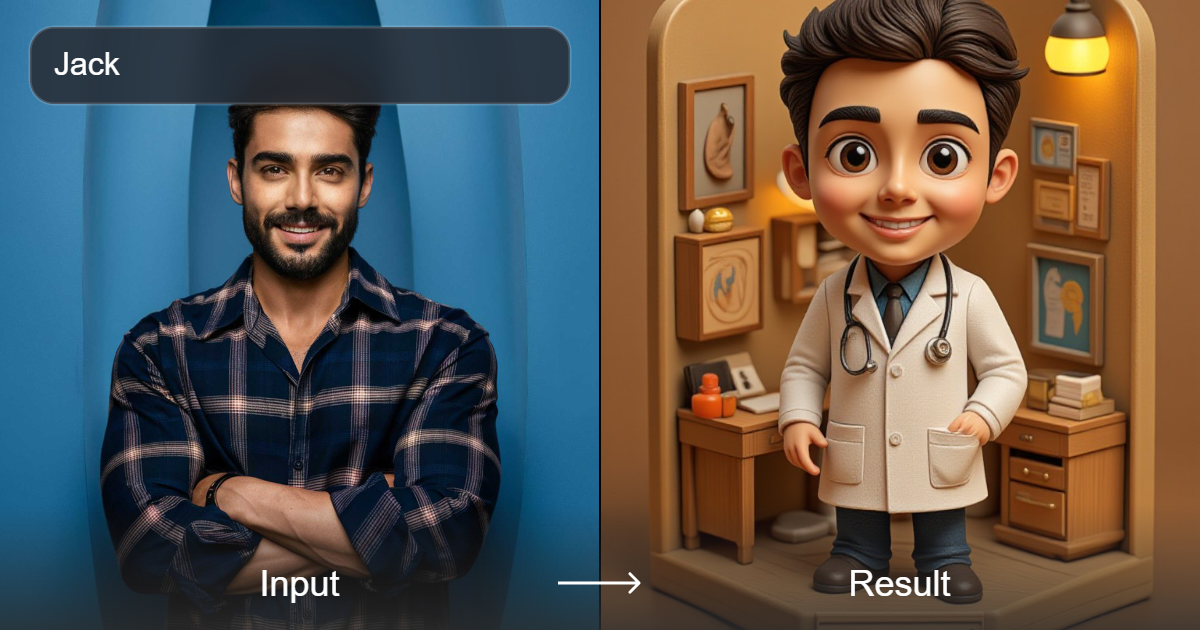 حوّل فنك إلى صور فوتوغرافية واقعية وساحرة وتشبه الدمى باستخدام محول النمط ثلاثي الأبعاد الخاص بنا. مثالي لصنع مشاهد مجسمة رائعة ونماذج صغيرة لطيفة.