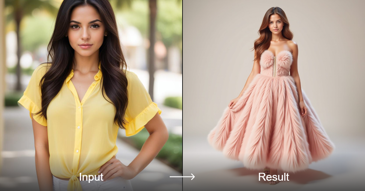 حوّل صورك إلى فساتين لطيفة وناعمة باستخدام محول الأسلوب الابتكاري الخاص بنا، وهو مثالي لمحبي التصاميم الرقيقة والملمسية.