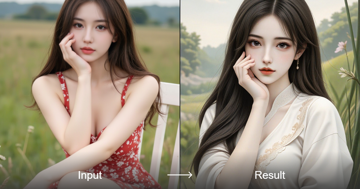 The Pastoral Style CG Portrait Style Converter is an AI image generator that creates 3D, Master-generated images of characters, with a focus on elegance and a soft color palette. The output format includes a warm, pastoral background that complements the character's good figure and exquisite hairstyle and makeup.