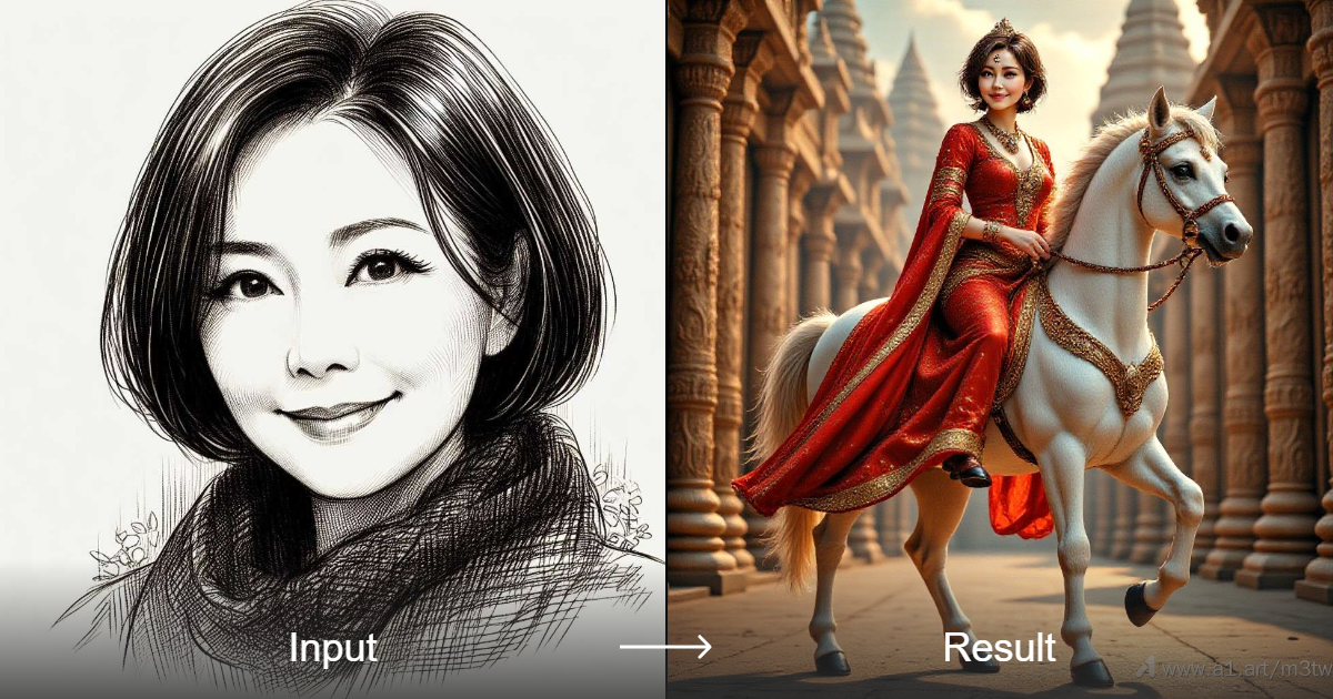 محول أسلوب "الملكة المسحورة" و"الفرس الممدوح" يُنشئ صورًا واقعية لملكة مهيبة وفرسها الوفي، مع تفاصيل ودقة على مستوى عالٍ.
